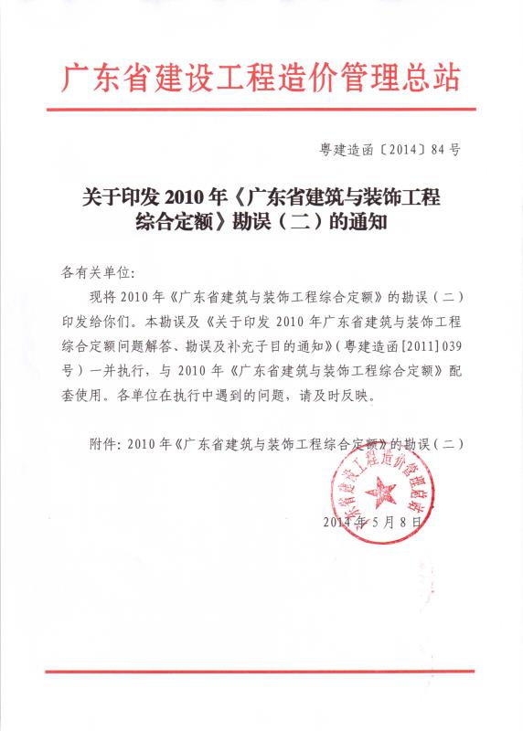 附件: 2010年《廣東省建筑與裝飾工程綜合定額》勘誤(二)