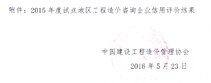 附件:2015年度試點(diǎn)地區(qū)工程造價(jià)咨詢企業(yè)信用評價(jià)結(jié)果
